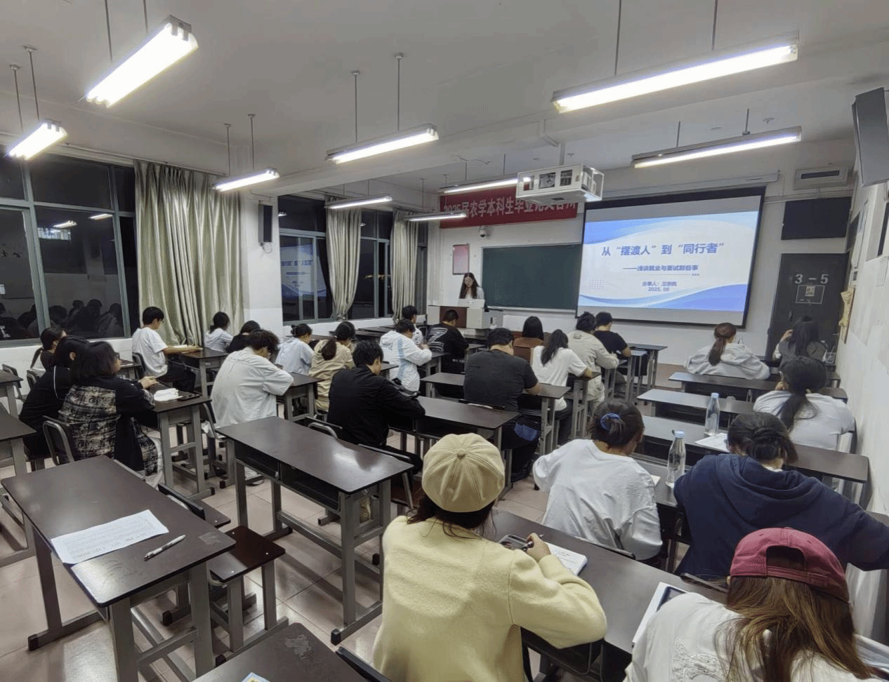 为切实做好 2026 届毕业生就业指导工作,帮助学子明晰就业方向、掌握面试技巧,经济管理学院于2025年9月23日晚,在东校区尚农楼 3-5 教室举办 “从‘摆渡人’到‘同行者’ 浅谈就业与面试那些事” 就业指导系列讲座,特邀学院 MPA 硕士研究生李玲、王学凤分享就业与面试经验。