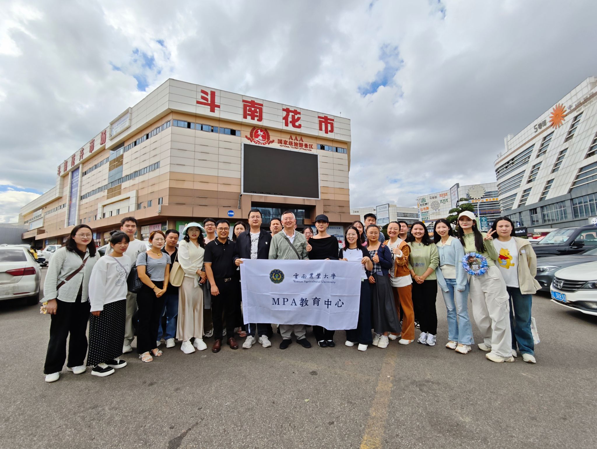 2025年10月4日,为深化课程理论学习、对接产业一线实际,在李永前教授的带领下,2024级全体MPA学生前往亚洲最大的鲜切花交易市场——斗南花市,开展《农产品营销》课程实践教学活动,师生们围绕鲜切花的生产流通、交易模式及创意农产品开发等内容展开实地调研。