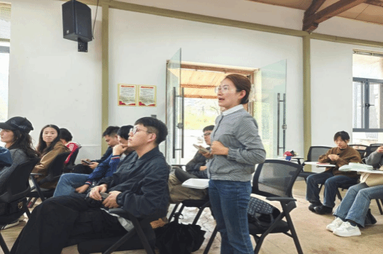 随后,师生们前往麦和稻田乡村振兴示范点,讲解员为师生们系统介绍了“稻田+文化+产业”的农文旅融合发展模式,以及社区党组织如何引领集体经济走向“组织化、市场化、品牌化”,并将田园资源转化为“稻田经济”。同学们也就项目申报、项目投资、运营模式等话题,与讲解员进行深入交流。
