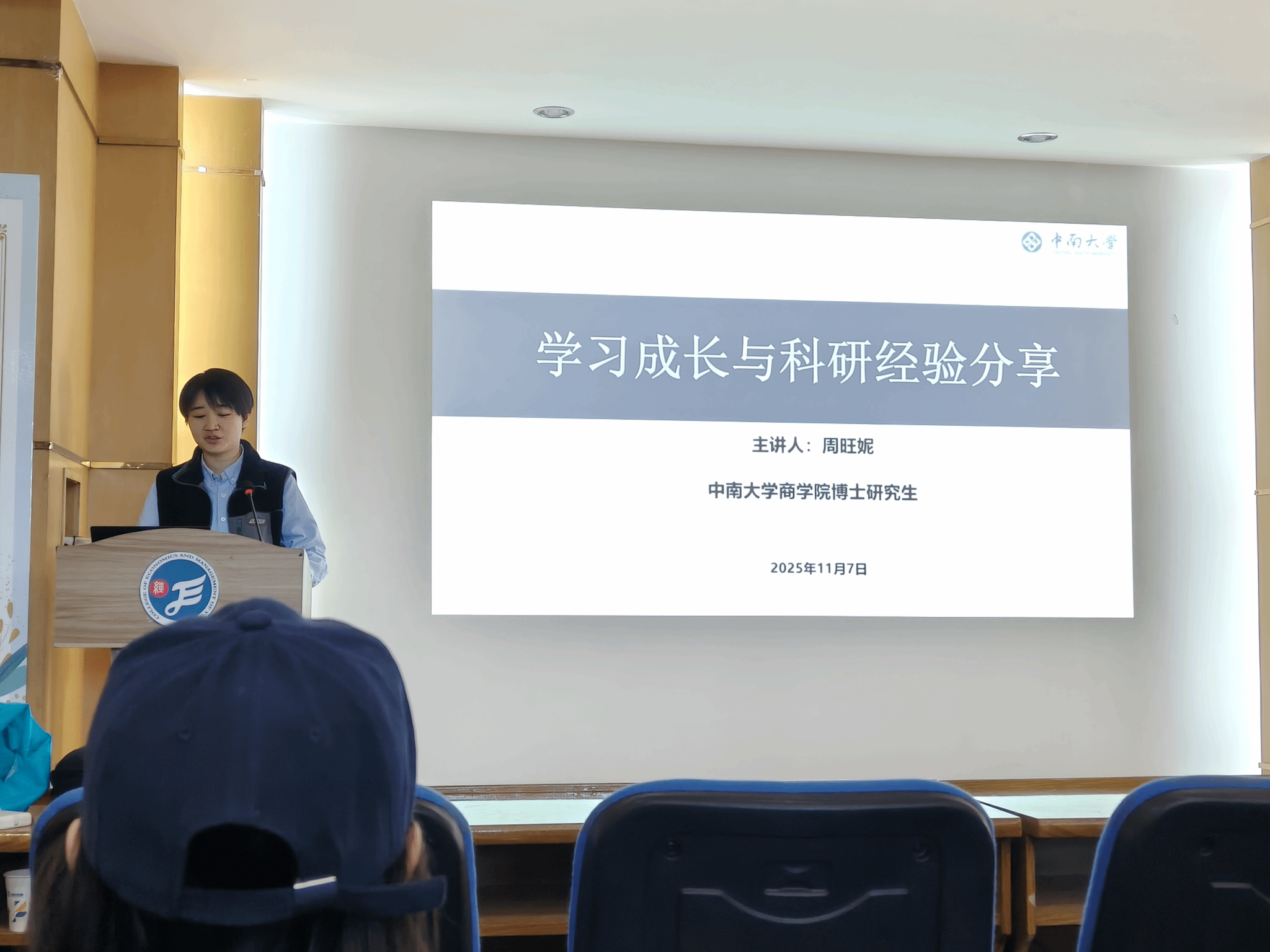 论坛第一场讲座由中南大学商学院博士后赵晓鸽老师讲授,她以“拆解学术论文写作全流程——从入门到规范”为题展开专题分享。她结合自身科研与论文发表经验,从学术思维培养、选题方向把控、框架体系搭建、正文逻辑梳理、文献引用规范到后期修改打磨等关键环节,进行了层层递进的系统拆解。赵晓鸽强调,研究生撰写第一篇学术论文的核心是“敢于起步、善于积累”,她以“完成永远比完美重要”的理念勉励同学们打破畏难情绪,主动研读顶刊文献汲取学术养分,积极与导师、同行沟通交流获取反馈,在持续实践中锤炼写作能力、提升学术规范。